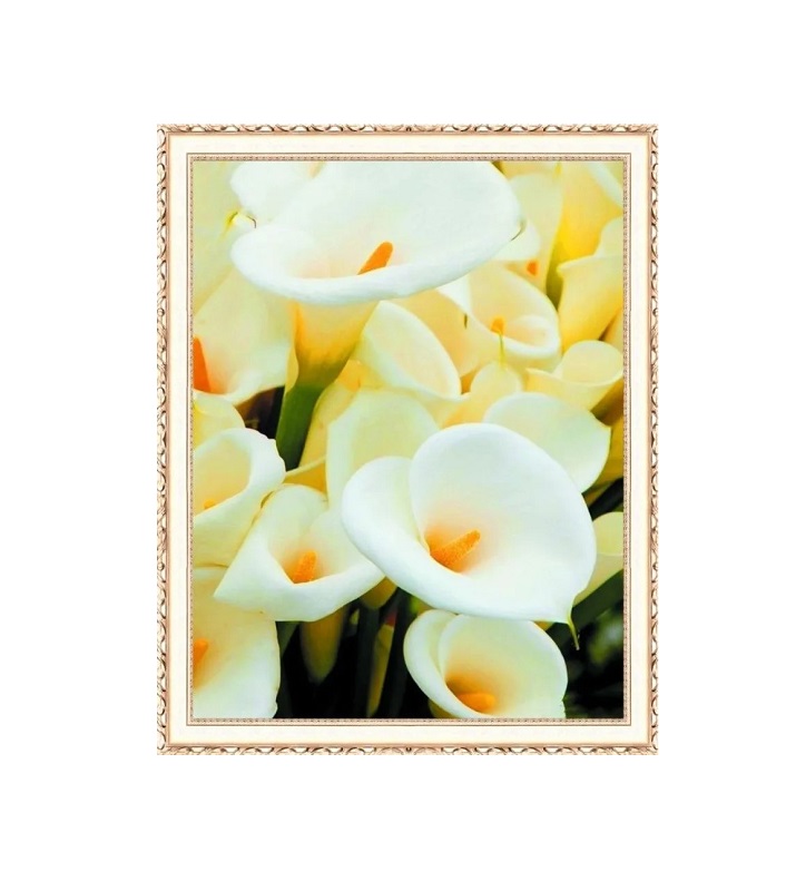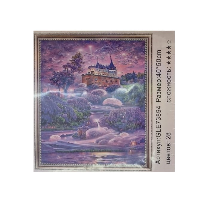 В набор входит: холст-основа с клеевым слоем на подрамнике, алмазы из древесной смолы всех необходимых цветов (упакованные в отдельные пакетики), инструкция с условными обозначениями, специальная ручка-стилус, лоточек (на нем удобно переворачивать стразы нужной стороной)
