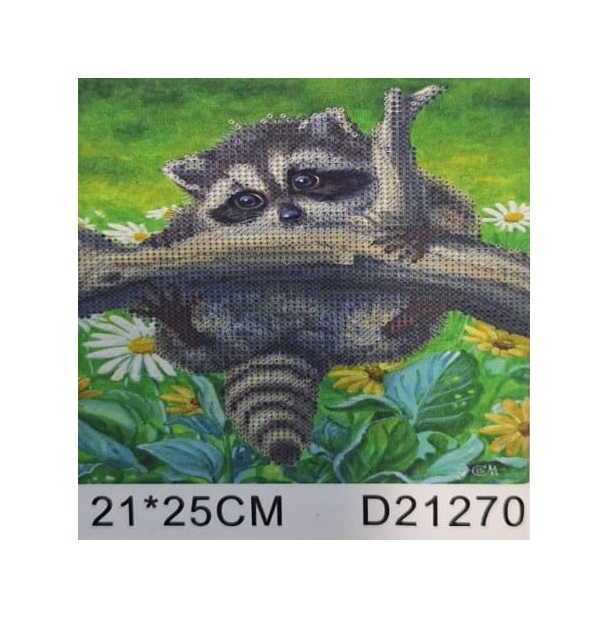 Алмазная мозаика арт. D21270 Енот-акробат 21*25 не полная выкладка на картоне