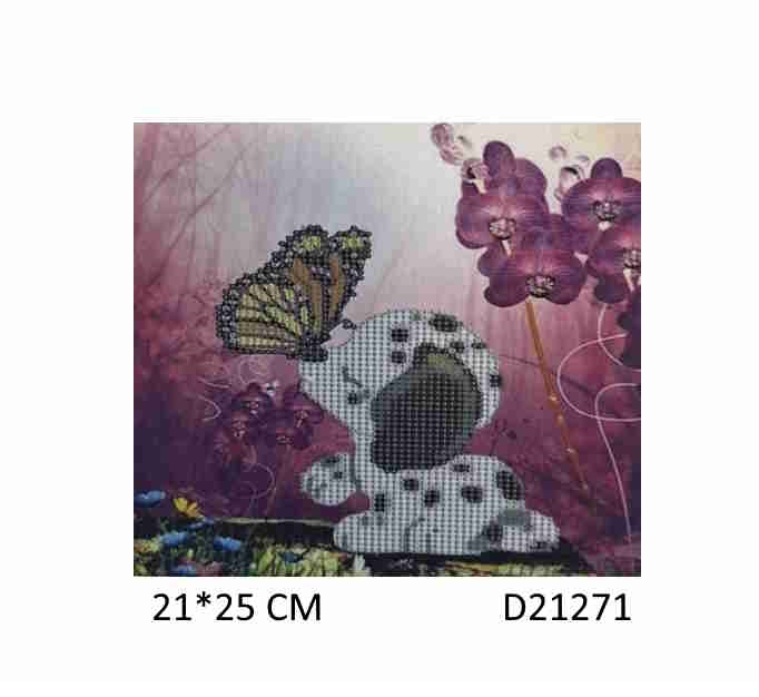Алмазная мозаика арт. D21271 Щенок и бабочка 21*25 не полная выкладка на картоне