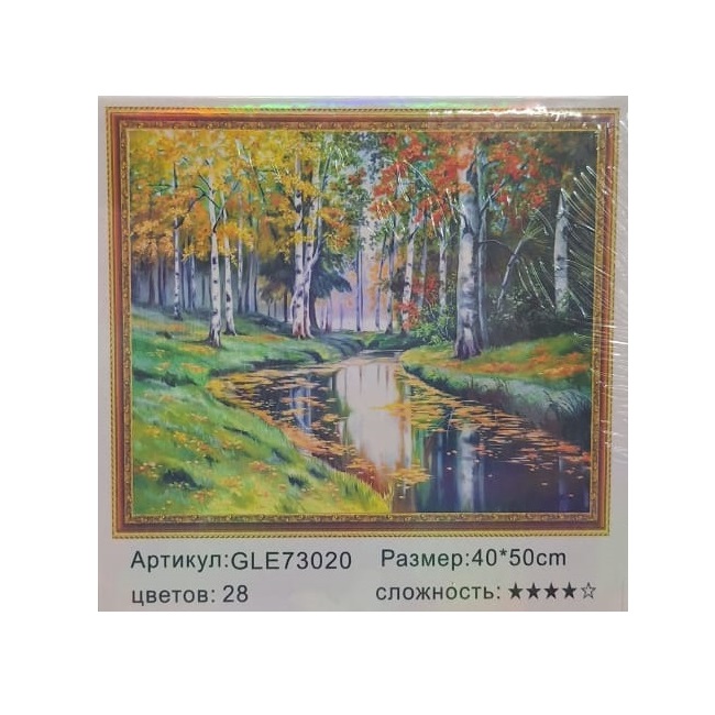 Алмазная мозаика арт. GLE71405 Березы у реки 40*50 полная выкладка на подрамнике