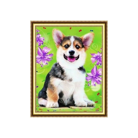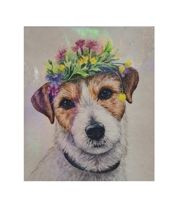Алмазная мозаика арт. D21443 Собака в веночке 21*25 не полная выкладка на картоне