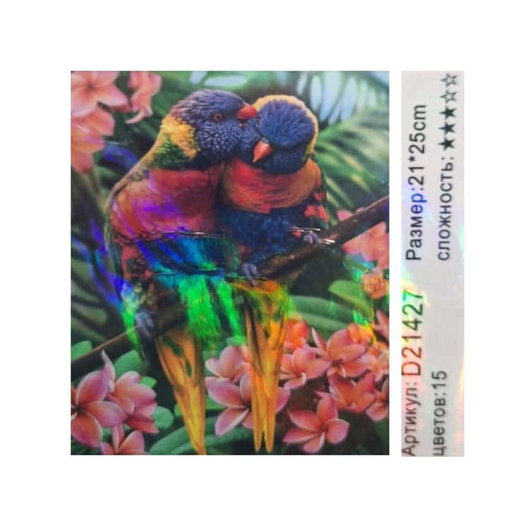 Алмазная мозаика арт. D21427 Пара попугаев 21*25 не полная выкладка на картоне