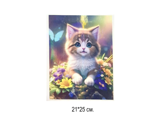 Алмазная мозаика арт. D21454 Котенок в цветах 21*25 не полная выкладка на картоне