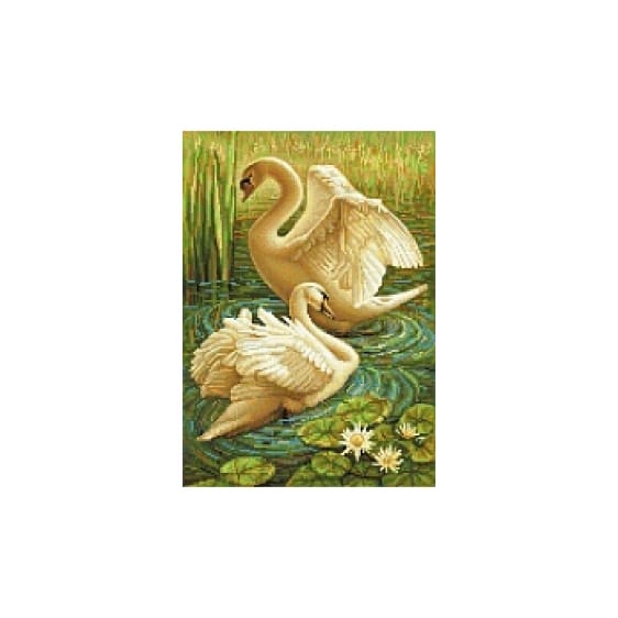 Алмазная мозаика арт. GLD63077 Два лебедя 30*40 полная выкладка на подрамнике