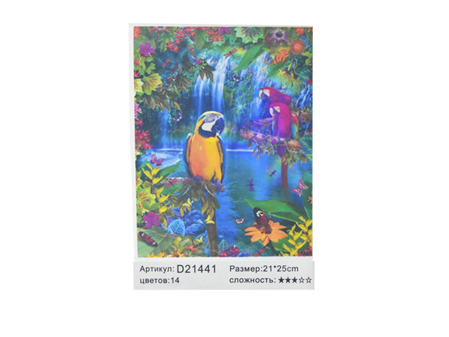 Алмазная мозаика арт. D21441 Два пестрых папугая 21*25 не полная выкладка на картоне