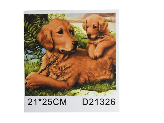 Алмазная мозаика арт. D21326 Собака и щенок с палкой 21*25 не полная выкладка на картоне