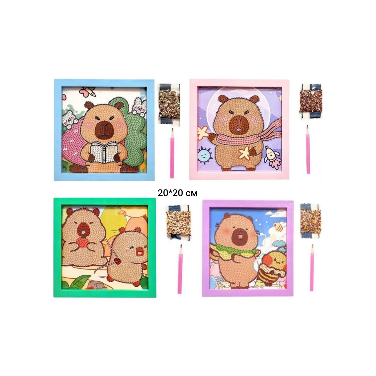 Алмазная мозаика арт. 805152 Капибара 20*20 частичная выкладка ассорти (12 шт.)