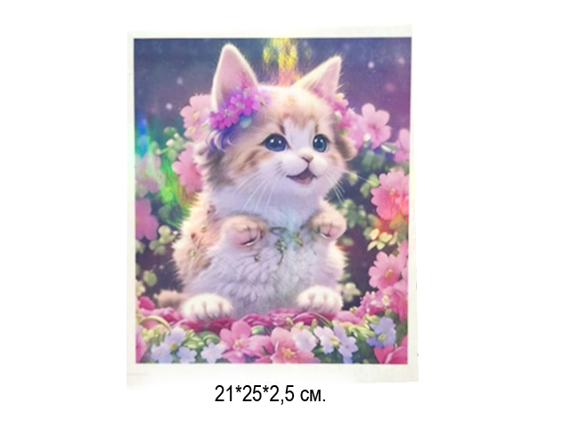 Алмазная мозаика арт. D21449 Котенок в цветах 21*25 не полная выкладка на картоне