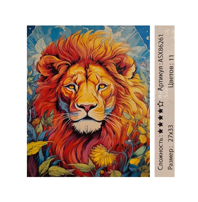 Алмазная мозаика арт. ASX86261 Лев 27*33 неполная выкладка на подрамнике