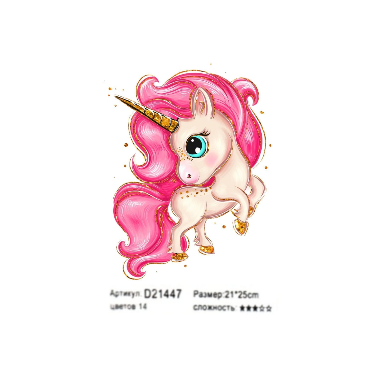 Алмазная мозаика арт. D21447 Розовый единорог 21*25 частичная выкладка на картоне
