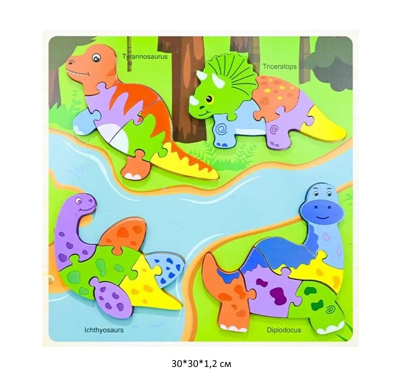 Деревянная игрушка арт. 5588-47-5 Пазл Динозаврики в пленке)Возраст: 1+