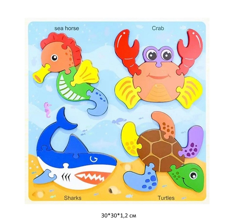 Деревянная игрушка арт. 5588-47-4 Пазл Морские обитатели в пленке)Возраст: 1+