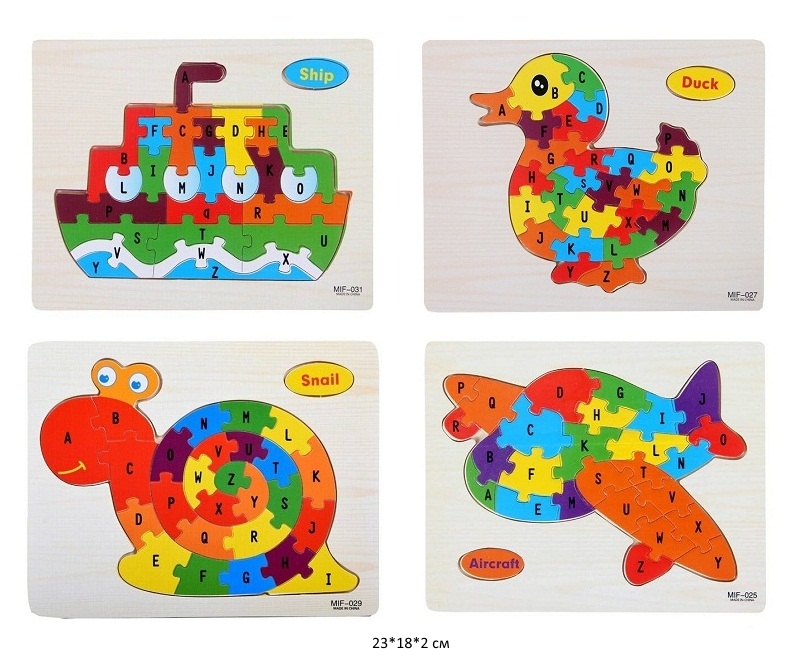 Деревянная игрушка арт. MIF-025/027/031/29 Пазл в ассортименте с англ буквами в пл.•
