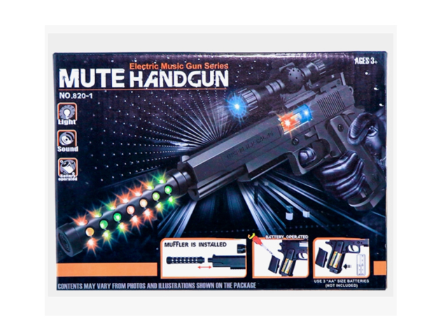 Оружие арт. 820-1 Пистолет с глушителем на батар, свет, звук, в кор.=