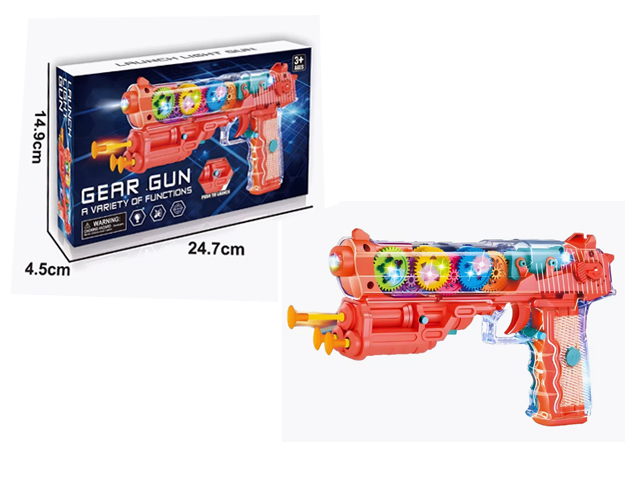 Оружие арт. 608 Пистолет стреляет присосками, шестеренки на бат. свет, звук в кор.=