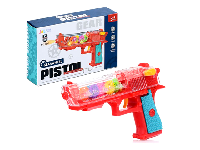 Оружие арт. 0307 Пистолет шестеренки на бат. свет, звук в кор.=