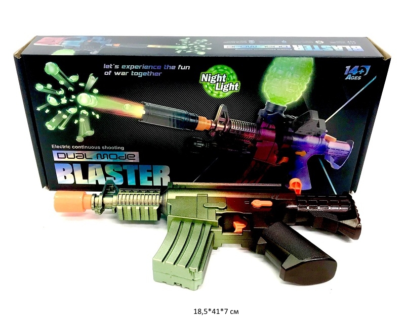 Каждый мальчик мечтает о таком оружии. Пистолет автомат со светящимися орбиз пулями перед игрой необходимо собрать. Режимы стрельбы контролируются курком, оружие стреляет шарами орбиз диаметром 7-8 мм. Удобно держать оружие как для прицельной стрельбы, так и для стрельбы от "бедра". Орбизы светятся в темноте, что добавит яркости игре, а так же поможет найти затерявшиеся пули.