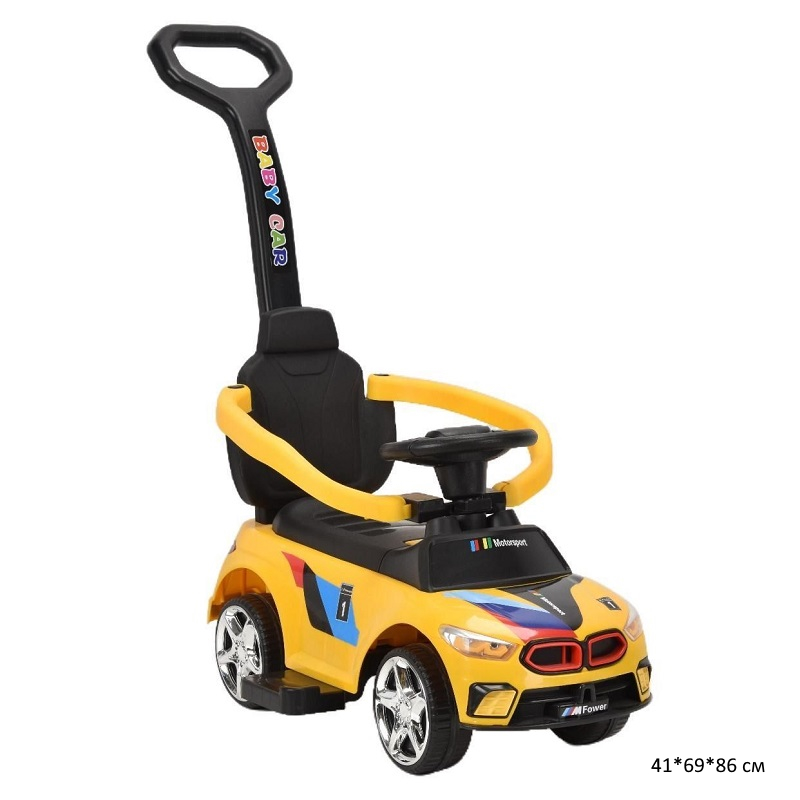 Толокар арт. 908-4 каталка с родительской ручкой. ограничителями свет, звук ЖЕЛТЫЙ в кор.67*30*33
