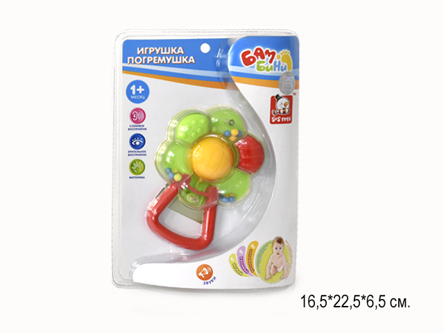 Особенностью этой погремушки-прорезывателя является ее особый неповерхностный способ окрашивания, безопасный для малыша. Погремушка имеет приятную расцветку и гладкие контуры. Посредством игры с погремушкой развивается мелкая моторика и воображение.