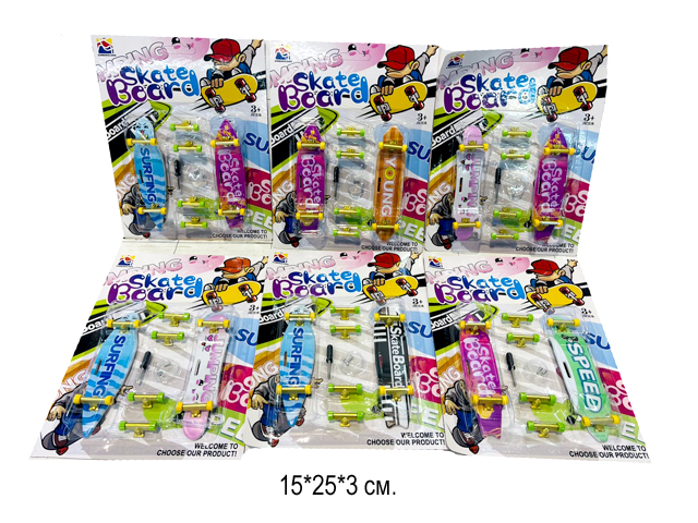 Скейтик арт. 035-2 Пальчиковый 2 шт. + колеса на листе•