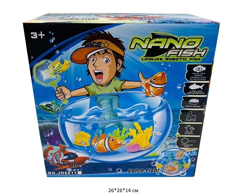 Интерактивная игра-рыбалка "Аквариум"— понравится не только малышам, но и врослым. Рыбка в воде ведет себя совсем как живая, и может двигаться в разных направлениях: опускаться на дно или подниматься к поверхности. Чтобы активировать ее, просто достаньте из упаковки и опустите в воду, рыбка тут же заспешит по своим рыбьим делам. В набор входит рыбка, мни-аквариум, замок, сачок, коралл.