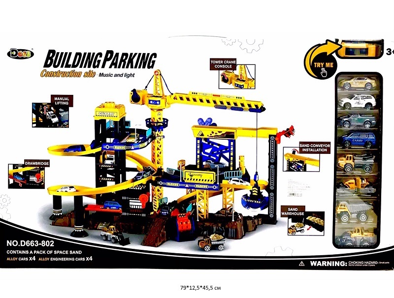 Парковка арт. D663-802 "Стройплощадка" со спиральным съездом, краном, свет, звук в кор._