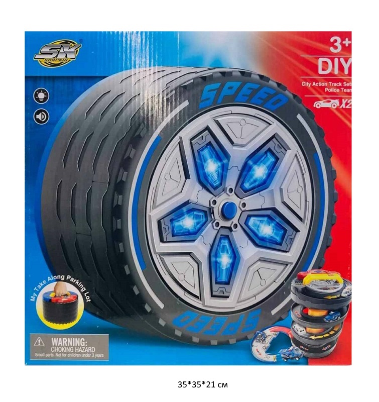 Парковка арт. SK-571JA "Колесо" трансформер свет, звук, спиральн. съезд в кор.~