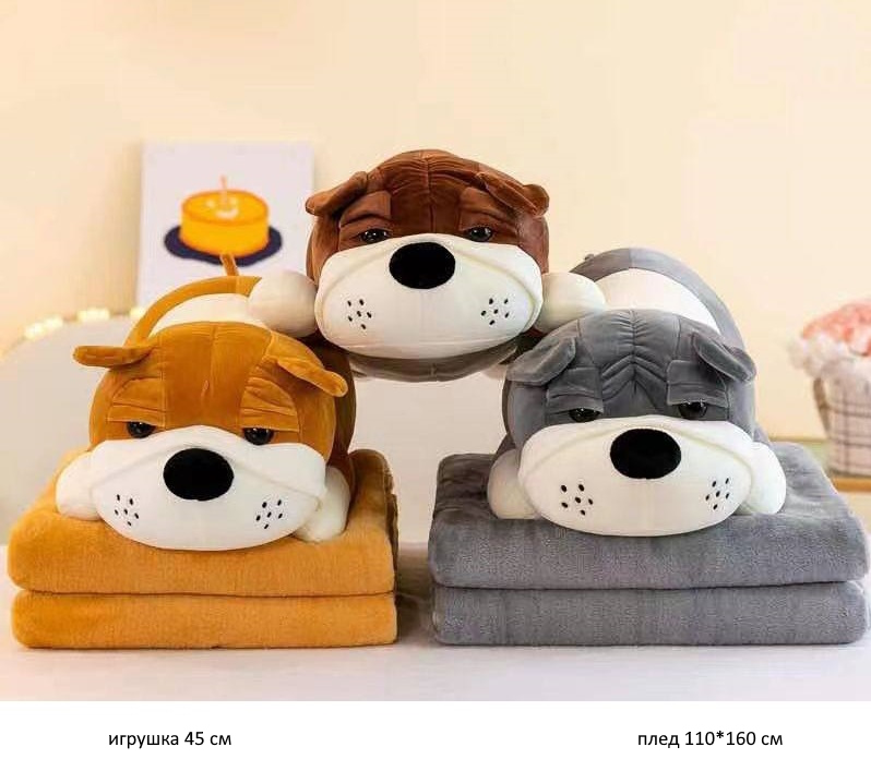 им Бульдог арт. 16424/24225-15 Цвета микс лежит с пледом в пак.)