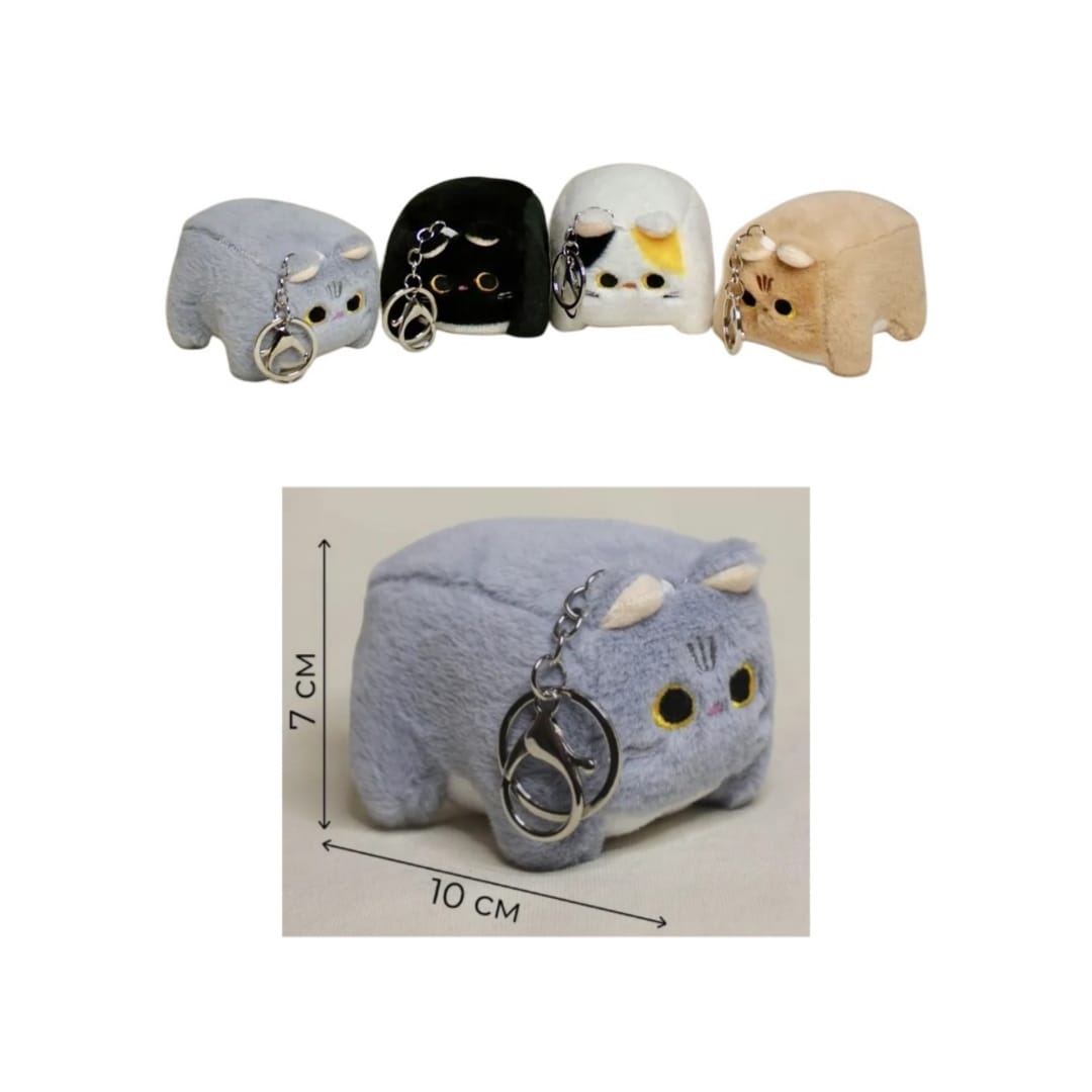 Брелок мягкая игрушка в виде забавного кубического котика на металлическом кольце