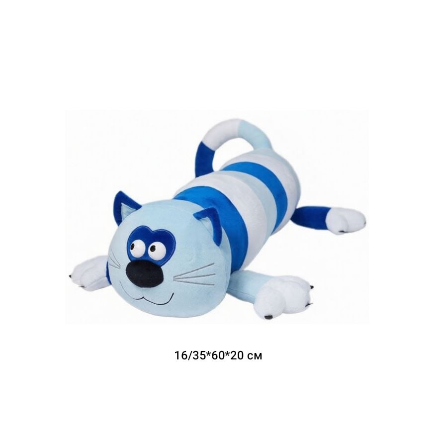 им Обнимашка арт. 12197-4-209 Кошка полосатая в синих тонах с выпуклыми глазами 60 см в пак.