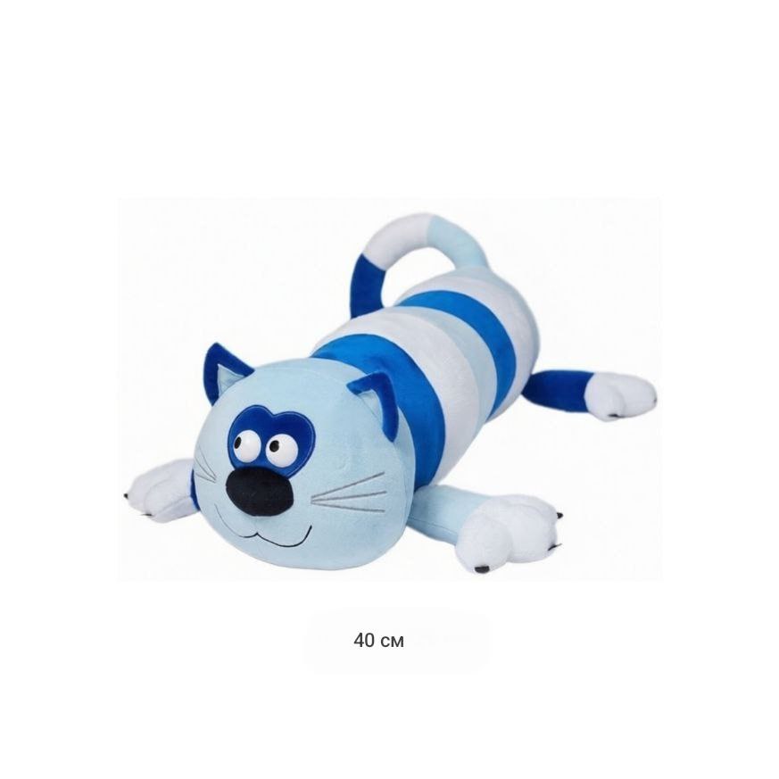 им Обнимашка арт. 13668-4-209 Кошка полосатая в синих тонах с выпуклыми глазами 40 см в пак.