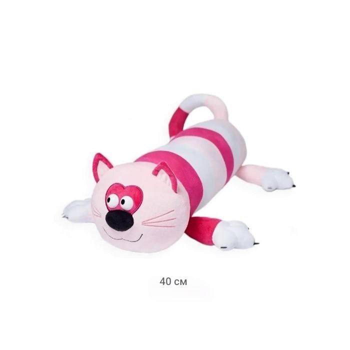 им Обнимашка арт. 13668-1-209 Кошка полосатая в розовых тонах с выпуклыми глазами 40 см в пак.