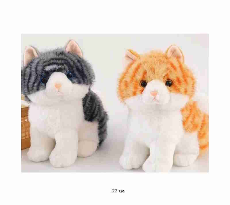 им Кошка арт. YE25106-1-2 Пушистая полосатая муз. 22 см цвета микс в пак.)