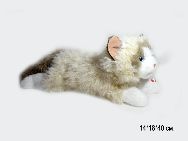им Кошка арт. 209090 Пушистая бежевая лежит мяукает 40 см в пак.