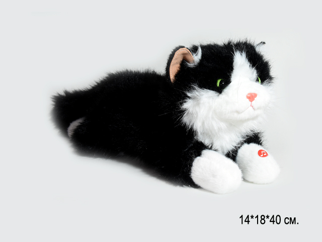 им Кошка арт. 209094 Пушистая черно-белая лежит мяукает 40 см в пак.