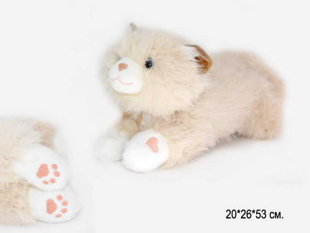 им Кошка арт. 209404 Бежевая белые лапки и мордочка лежит мяукает 60 см в пак.