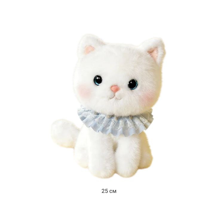им Кошка арт. 209964 Белая с кружевным воротничком 25 см в пак.