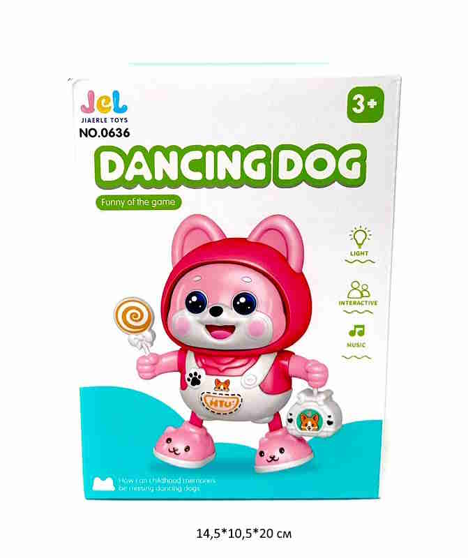 Собака арт. 0636 На батар. танцует, свет, музыка в кор._