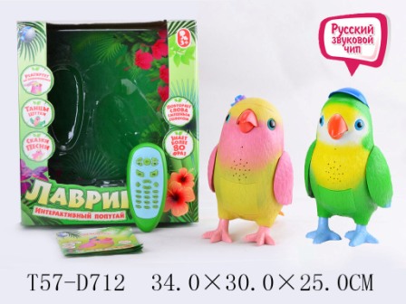 - Попугай арт. 271/273" Интерактив. в кор. (6шт./бл.3)×Попугай арт. 271/273" Интерактив. в кор. (6шт./бл.3)Интерактивная игрушка Попугай может рассказать 4 сказки и спеть 12 песенок. Он отвечает на голосовые команды и может станцевать, реагирует на прикосновения, шевелит крыльями и клювом.