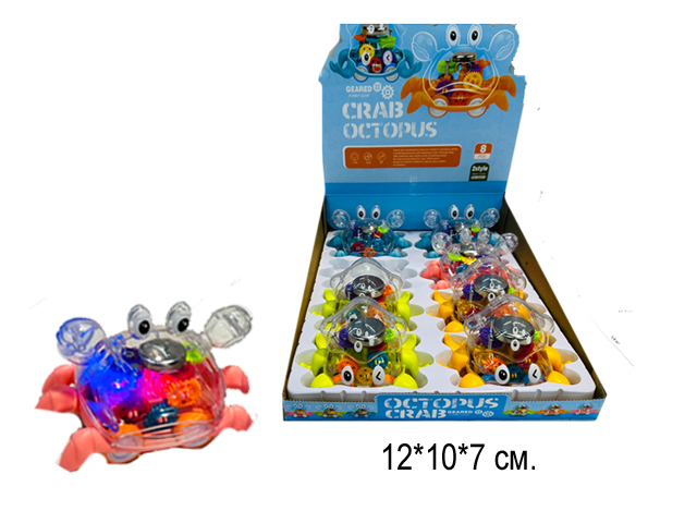 - Морские арт. SR878-17 Краб, осьминог 2 вида шестеренки на бат. свет, звук (8 шт.) шоубокс•×Морские арт. SR878-17 Краб, осьминог 2 вида шестеренки на бат. свет, звук (8 шт.) шоубокс•Забавные морские животные крабики и осьминожки каждому ребенку. Ирушка едит по гладкой поверхности и крутится на 360 градусов, при столкновении-разворачивается и движется в обратную сторону. Корпус светится разноцветными огоньками, что непременно завлечет малыша. Под прозрачной спинкой видно как крутятся разноцветные шестеренки. Игрушка проигрфвает веселую ненавязчивую песенку. Работает от батареек (нет в комплекте).