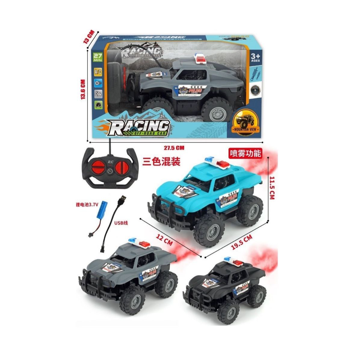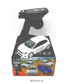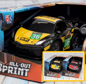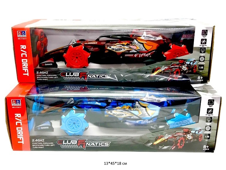 У гоночной машины идет пульт 2.4G (работает от 2 батареек АА, не идут в комплекте) дальность действия которого 50 м.