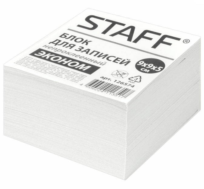 кс_Блок для записей арт. 126574 STAFF, непроклеенный, куб 9х9х5см,белизна 70-80%
