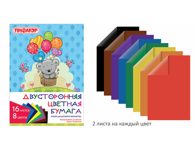 Цветная бумага ПИФАГОР, состоящая из ярких и насыщенных цветов, позволит создать прекрасную аппликацию или поделку. Рекомендована для уроков труда и технологии которые способствуют развитию моторики, фантазии и пространственного мышления.
