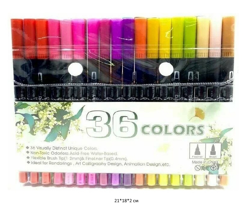Фломастеры арт. 214-13 Двусторонние Набор 36 цветов•
