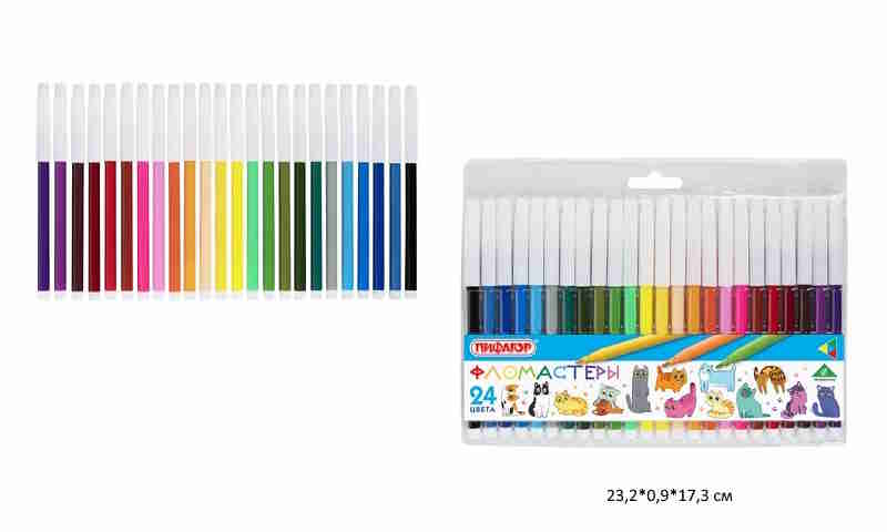 кс_Фломастеры арт. 152454 ПИФАГОР "ВЕСЕЛЫЕ ПИТОМЦЫ" 24 цвета, невентилируемый колпачок