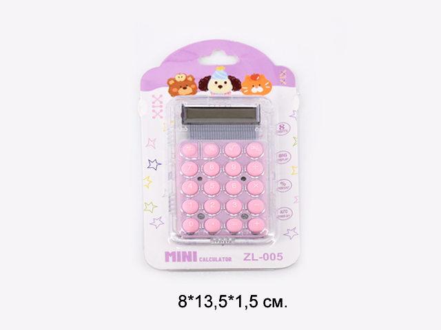 кц_Калькулятор карманный арт. ZL-005 8 разрядов, питание от солнца прозрачный цвета микс на листе