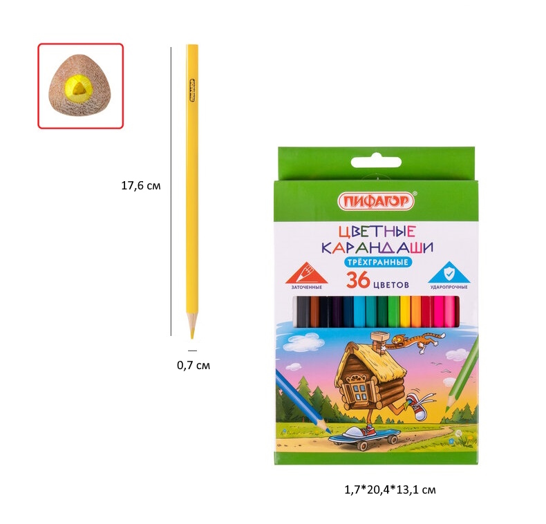 кс_Карандаши цветные арт. 181824 ПИФАГОР "Сказки", 36 цветов, трехгранные, натуральное дерево