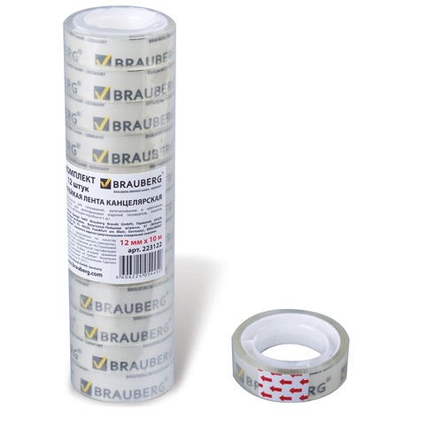 кс_Клейкие ленты арт. 223122 12ммх10м канцелярские BRAUBERG комплект 12шт. прозр. гарант. длинаШирина ленты: 12 мм