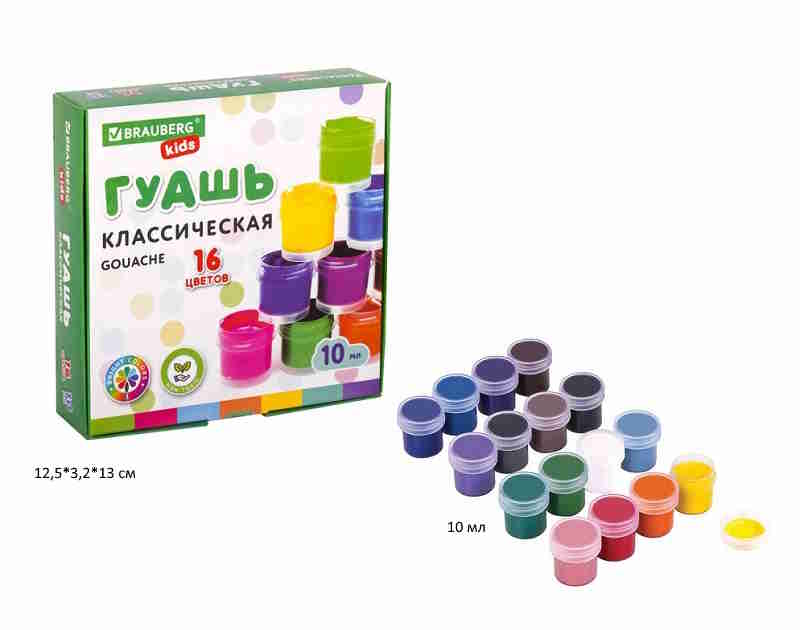 кс_Гуашь арт. 192375 BRAUBERG KIDS "NEW" 16 цветов по 10 мл