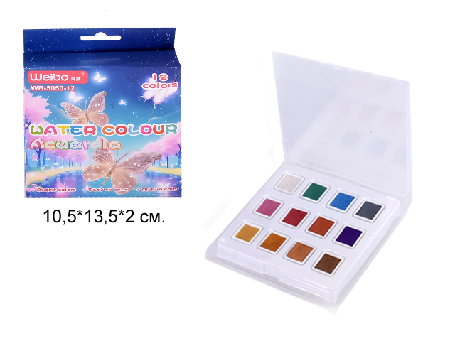 кц_Краски акварельные арт. WB-5050-12 Набор 12 цветов в синей кор.
